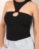 El corte circular en el frente y la pieza triangular en el cuello crean una estructura visual que acompaña el torso sin rigidez, aportando comodidad y seguridad en cada movimiento.