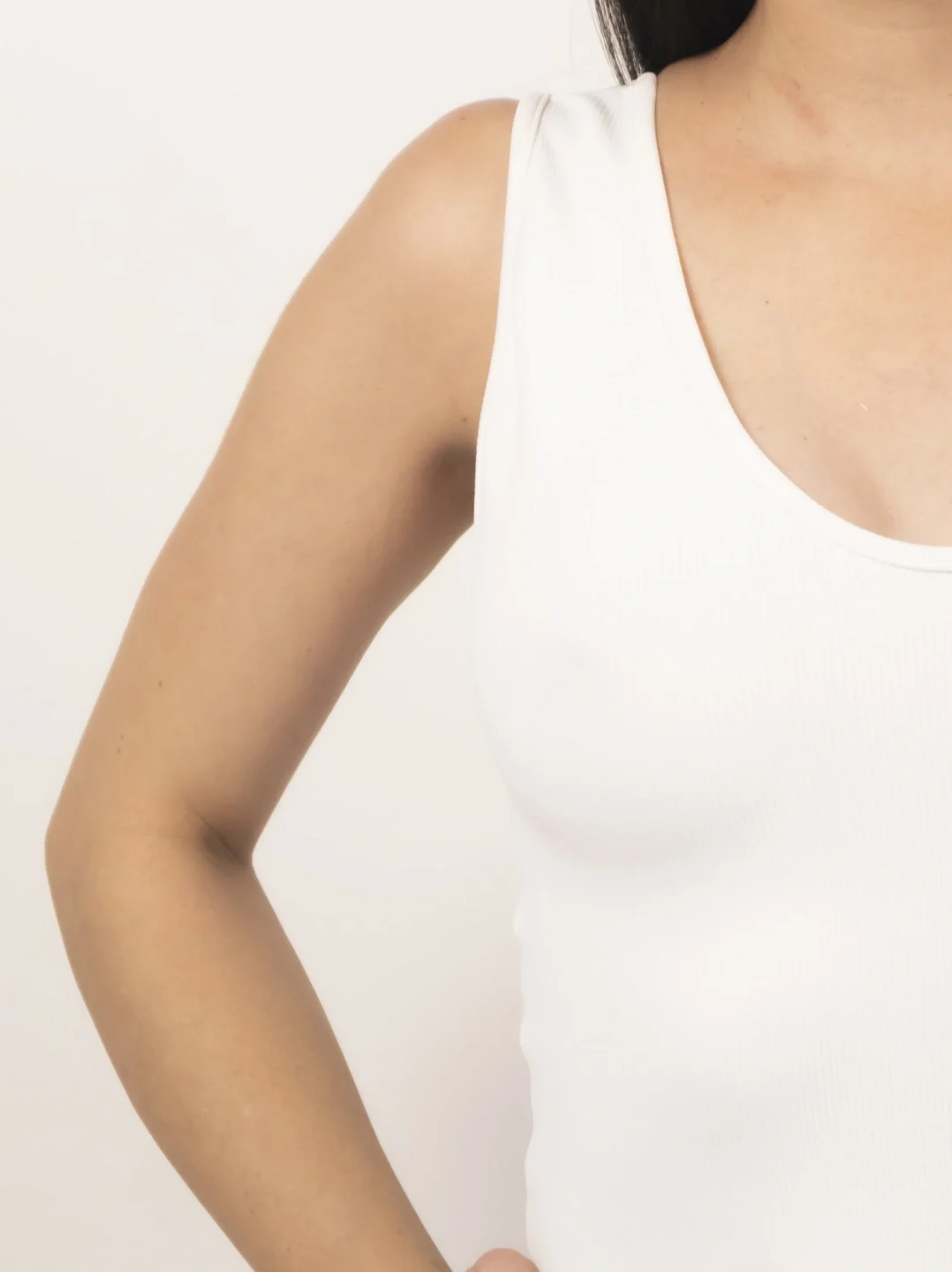 Las tiras anchas aportan seguridad y comodidad en los hombros, mientras el escote en V crea profundidad visual y estiliza la figura de forma natural. Es una prenda que acompaña el cuerpo sin marcarlo, ideal para sentirte cómoda, firme y segura durante todo el día.