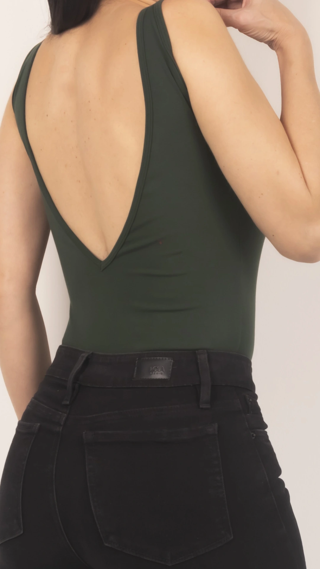 El cuello bandeja aporta una línea limpia y sofisticada en el frente, mientras el escote en V en la espalda equilibra la silueta con sutileza. Su diseño ajustado acompaña el cuerpo con una sensación de firmeza suave, pensada para sentirte segura y cómoda durante todo el día.